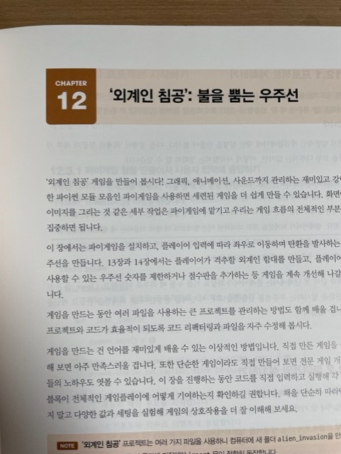 실습편은 3가지 프로젝트를 제공하는데 첫번째는 pygame을 통해 과거의 오락실에서 한번 해봤을 만한(또는 추억의 갤러그 같은) 슈팅 게임을 만들어보는 것이고 그 다음은 데이터를 기반으로하는 다양한 시각화, 마지막으로 Django 기반 웹서비스 개발이다. 이렇듯 단순 실습이 아니라 프로젝트 기반이고 충분히 사용자가 개발을 하면서 재미를 느낄 수 있도록 게임을 도입했다는 것이 인상적이다.